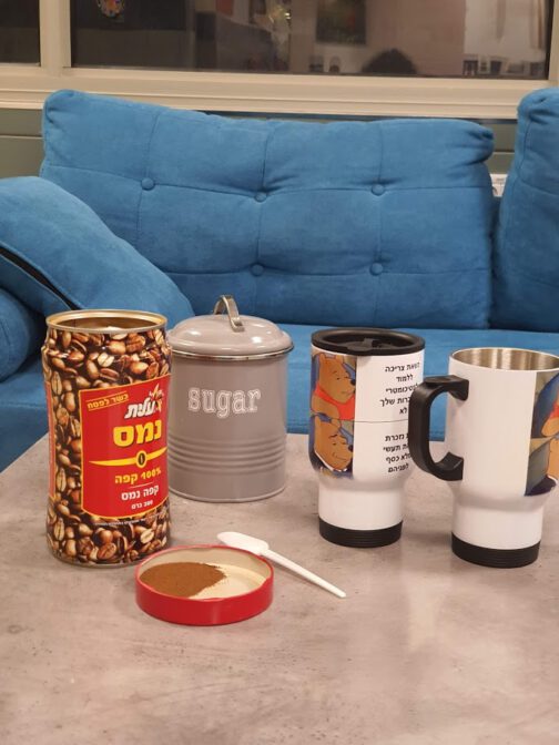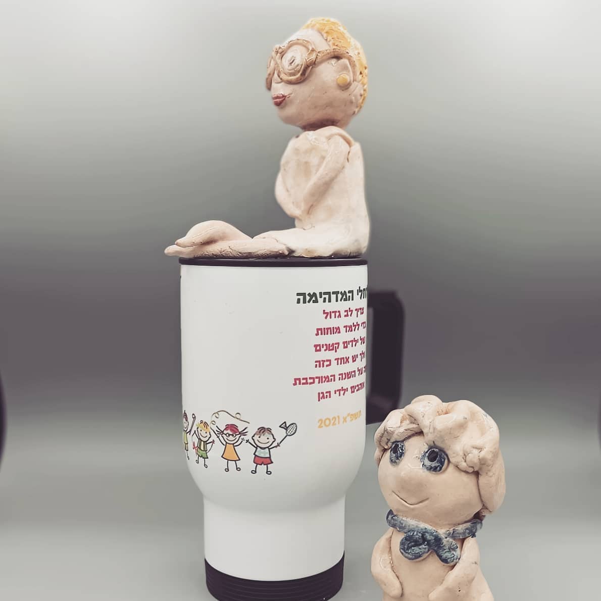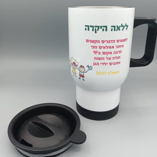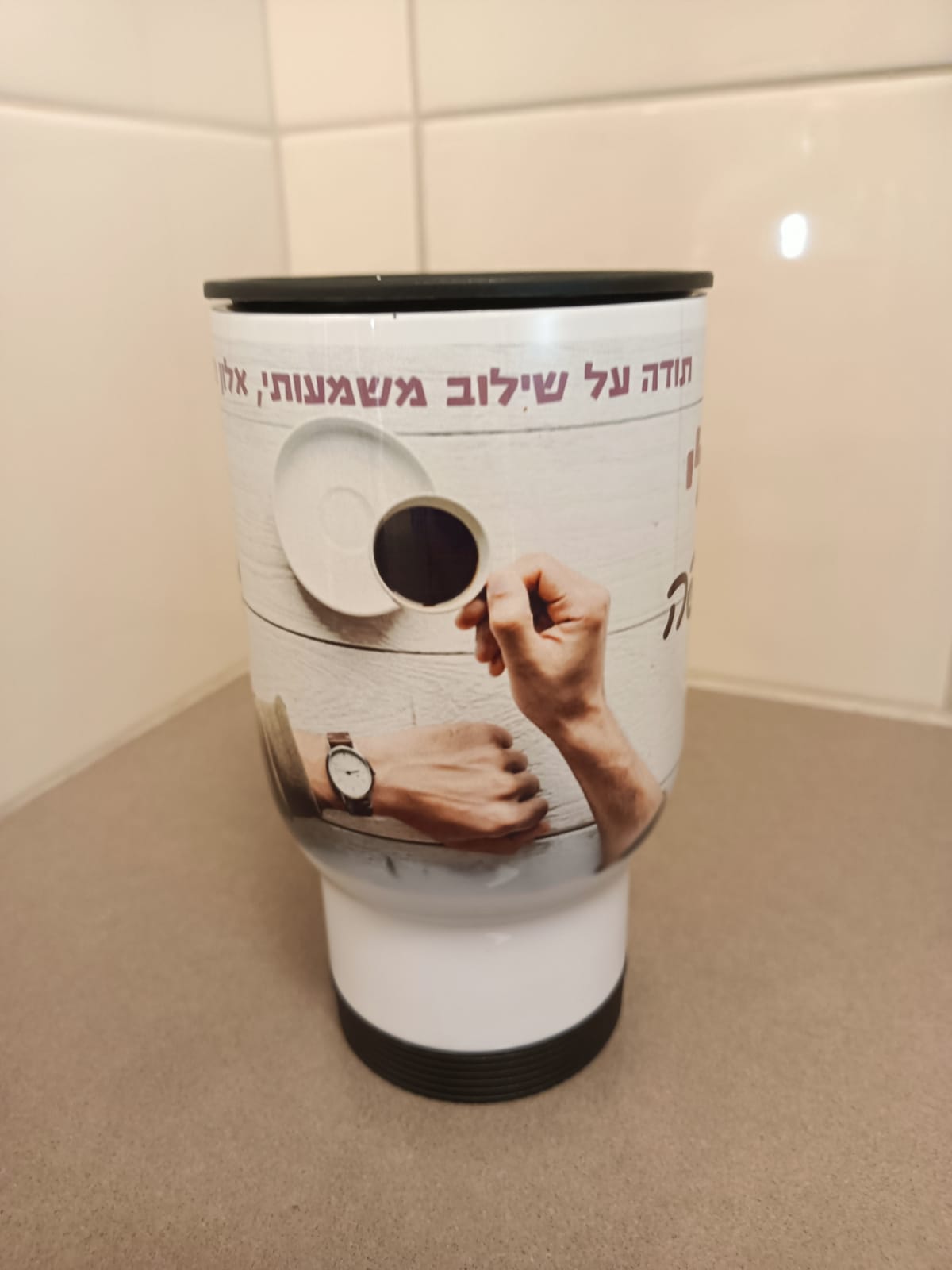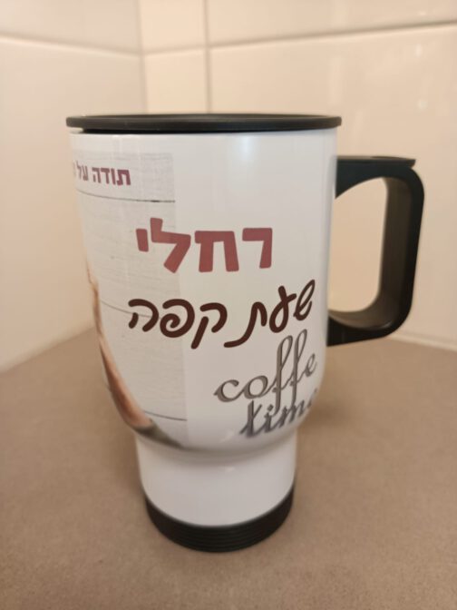 ספל תרמי ששומר על חום, בהדפסה אישית, מתנה שכל מי שאין לו הרבה זמן בבוקר לשבת ולשתות קפה ישמח לקבל 🙂